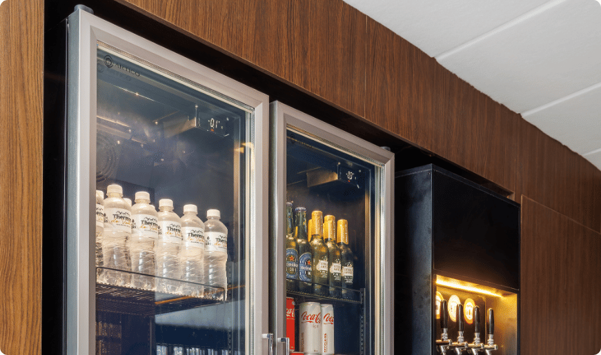 Sua porta de vidro duplo com aquecimento evita condensação, mantendo o visual limpo e elegante.